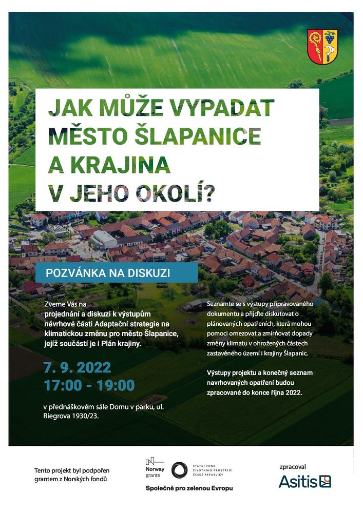 Zveme vás na projednání a diskuzi k výstupům návrhové části Adaptační strategie na klimatickou změnu pro město Šlapanice, jejíž součástí je i Plán krajiny.