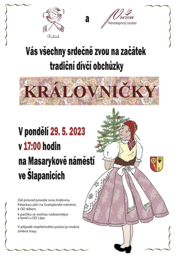 Přijďte se podívat na začátek obchůzky královniček v pondělí 29. května na Masarykovo náměstí ve Šlapanicích.