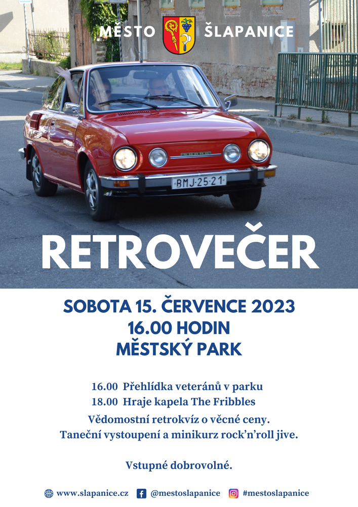 Všechny milovníky historických automobilů a motocyklů z 60. až 80. let zveme do městského parku na již tradiční Retrovečer. Těšit se můžeme i na taneční ukázku a minikurz rock’n’roll jive.