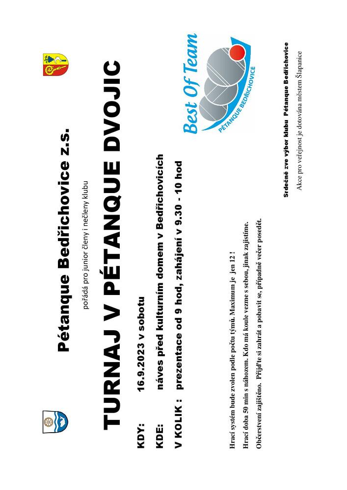 Pétanque Bedřichovice z.s. pořádá pro junior členy i nečleny klubu turnaj v Pétanque dvojic.