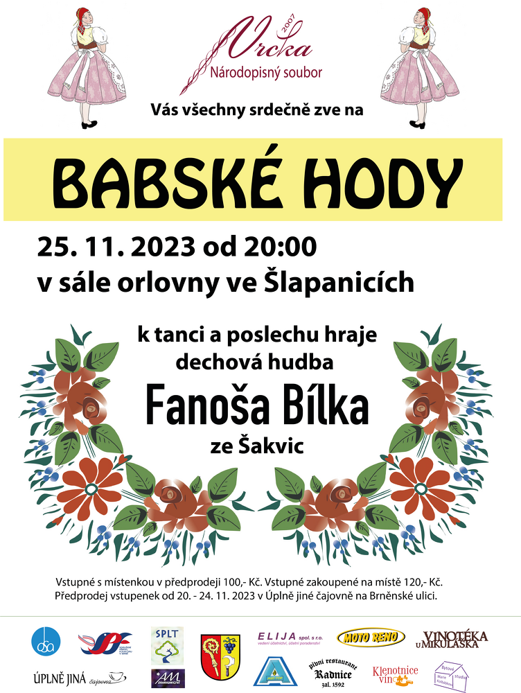 Přijďte si zazpívat, zatancovat si a pobavit se na tradiční Babské hody pořádané národopisným souborem Vrčka.