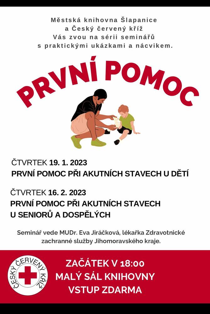 Městská knihovna Šlapanice a Český červený kříž vás zvou na sérii seminářů s praktickými ukázkami a nácvikem.