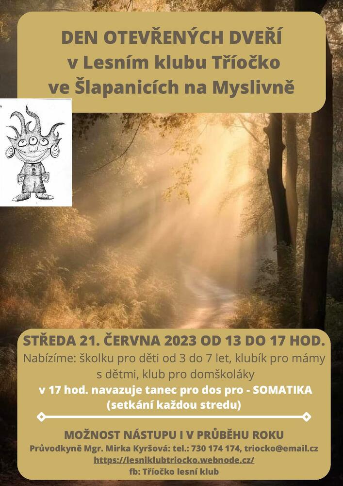 Lesní klub Tříočko pořádá den otevřených dveří ve Šlapanicích na Myslivně.