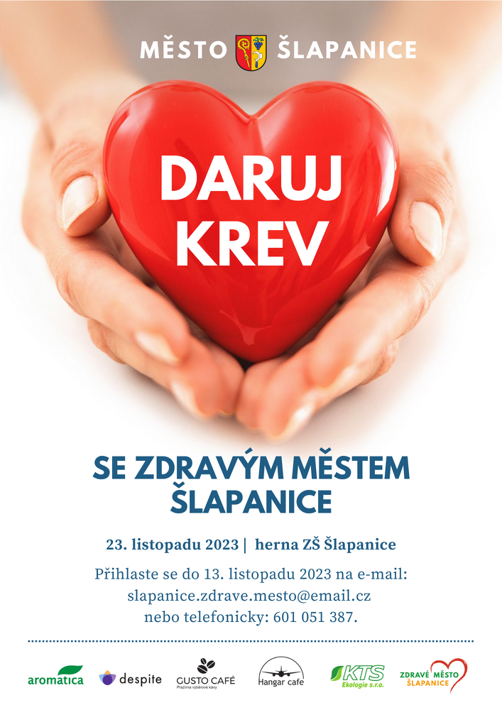 Přijďte ve čtvrtek 23. listopadu 2023 darovat krev přímo ve Šlapanicích! Přihlaste se co nejdříve na e-mail: slapanice.zdrave.mesto@email.cz.