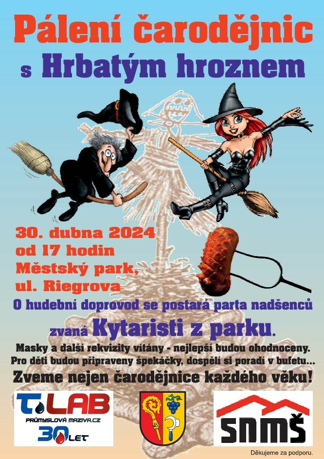 Spolek Hrbatý hrozen zve na tradiční pálení čarodějnic ve Šlapanicích.