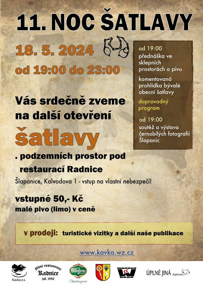 V sobotu 18. května začínáme v 19 hodin přednáškou o pivu a pokračujeme dalším doprovodným programem včetně výstavy a soutěže černobílých fotografií Šlapanic.