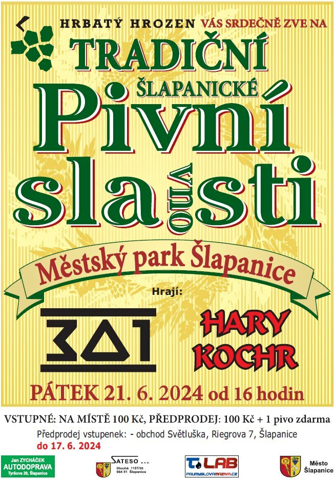 Hrbatý hrozen pořádá oblíbené ochutnávky pivního moku, spojený s kvalitní hudbou. Akce se koná 21. června v městském parku od 16. hodin.