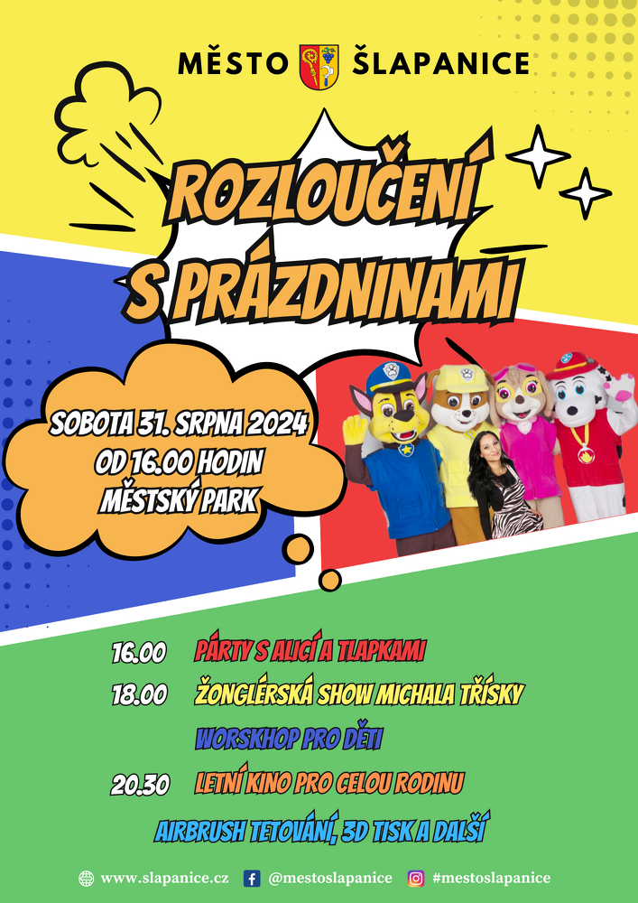 Pojďme zamávat létu poslední srpnový den do městského parku. Pomůžou nám hrdinové z jednoho z nejoblíbenějších animovaných seriálů a pro větší děti žonglér Michal Tříska, který sklidil potlesk minulý rok i u dospělého obecenstva. Vše završíme posledním letošním letním kinem.