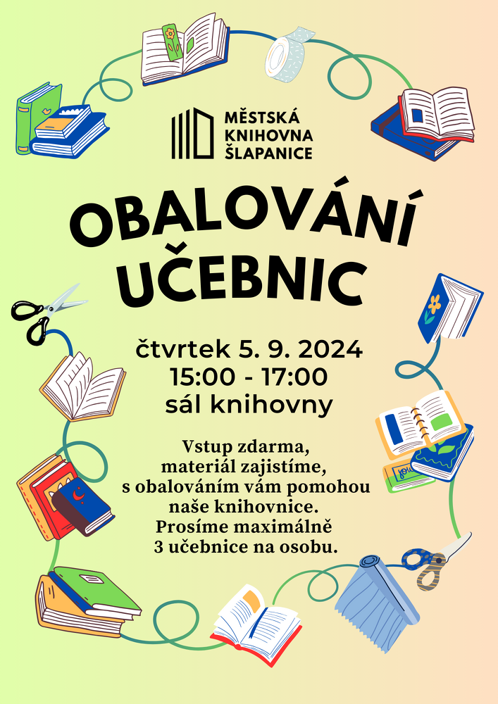 Městská knihovna nabízí pomoc s obalením učebnic ve čtvrtek 5. září od 15 - 17 hodin.