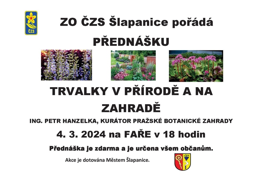 ZO ČZS Šlapanice vás zve 4. března od 18:00 na faru na přednášku týkající se trvalek v přírodě a na zahradách.