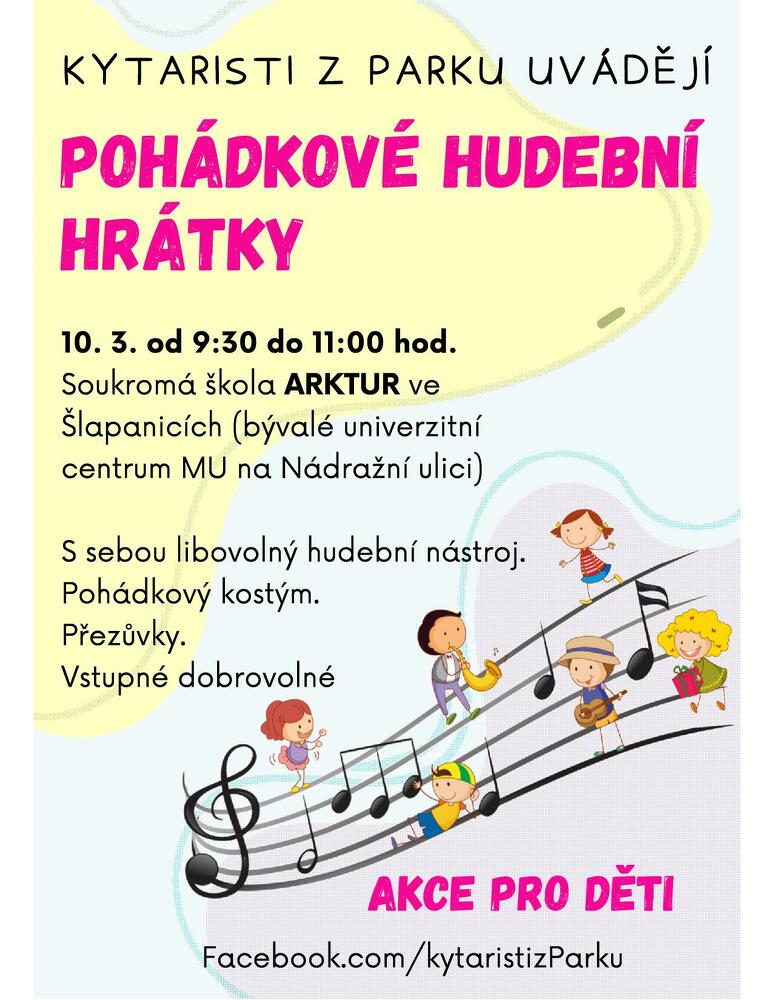 Kytaristi z parku zvou všechny děti na pohádkové hudební kytary. Těší se na vás již tuto neděli od 9.30 v prostorách soukromé školy Arktur.