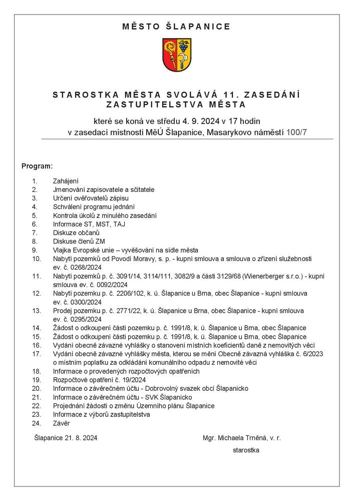 Více informací bude zveřejněno před zasedáním na webu www.slapanice.cz/2024.