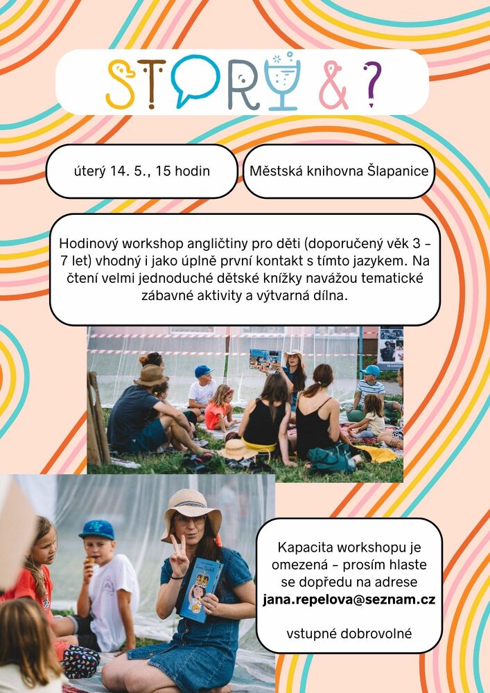 Městská knihovna Šlapanice vás zve na hodinový workshop angličtiny pro děti. Workshop proběhne 14.5.2024 od 15 hodin. Kapacita je omezená, hlaste se prosím na adrese jana.repelova@seznam.cz. Vstupné dobrovolné.