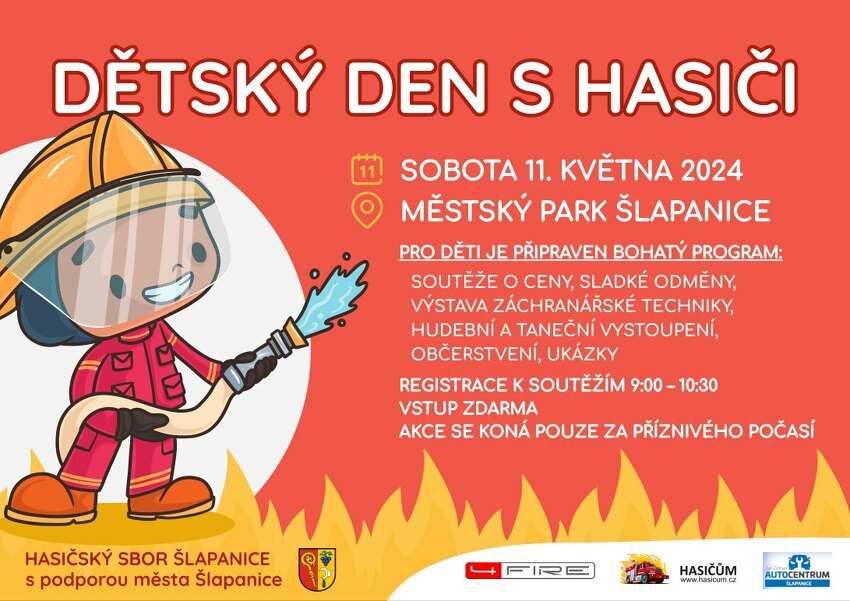 Hasiči zvou všechny děti v sobotu 11.května na dětský den pořádaný v městském parku.