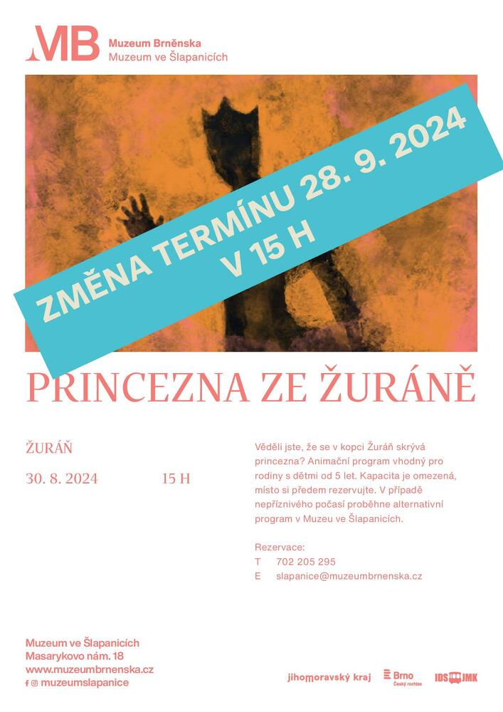 Věděli jste, že se v kopci Žuráň skrývá princezna? Animační program vhodný pro rodiny s dětmi od 5 let. Kapacita je omezená, místo si předem rezervujte. V případě nepříznivého počasí proběhne alternativní program v Muzeu ve Šlapanicích.