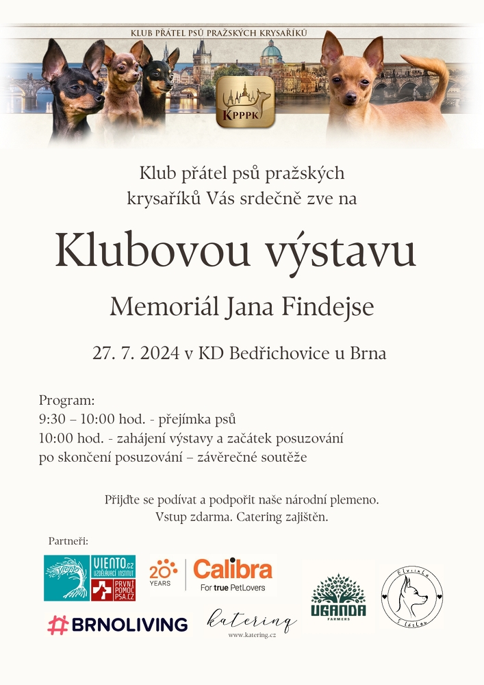 Klub přátel psů pražských krysaříků vás srdečně zve na klubovou výstavu - Memoriál Jana Findejse. Už tuto sobotu 27. července 2024 v KD Bedřichovice.