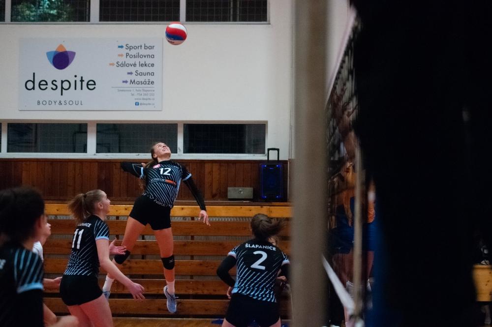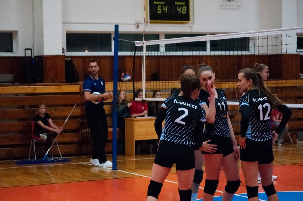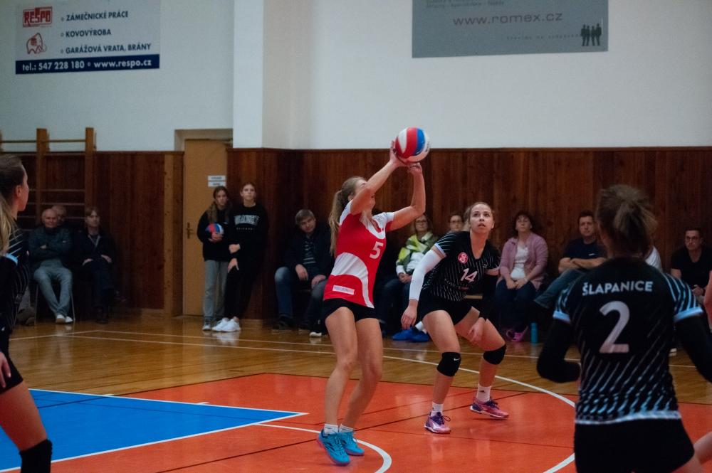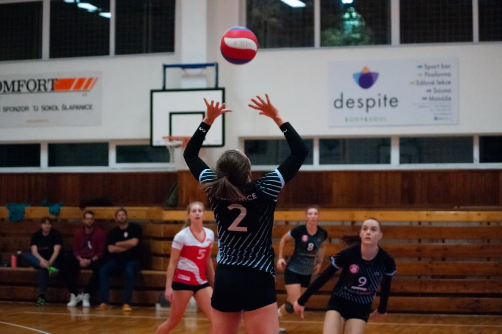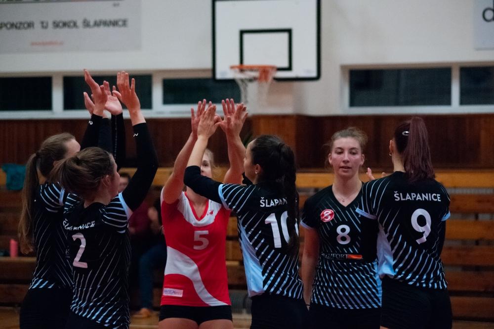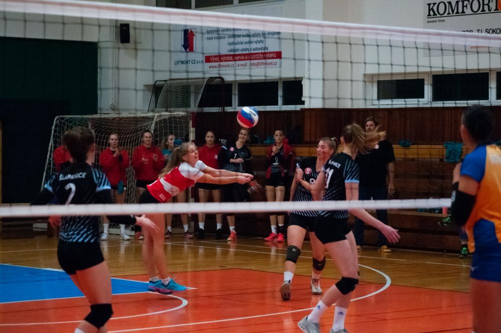 TJ Sokol Šlapanice - Kočendová, Hubíková, Hrochová, Koltsová, Novotná, Řeháková. Libero: Gállová. Střídaly: Formanková, Přibylová, Zelená, Šubíková, Provazníková.