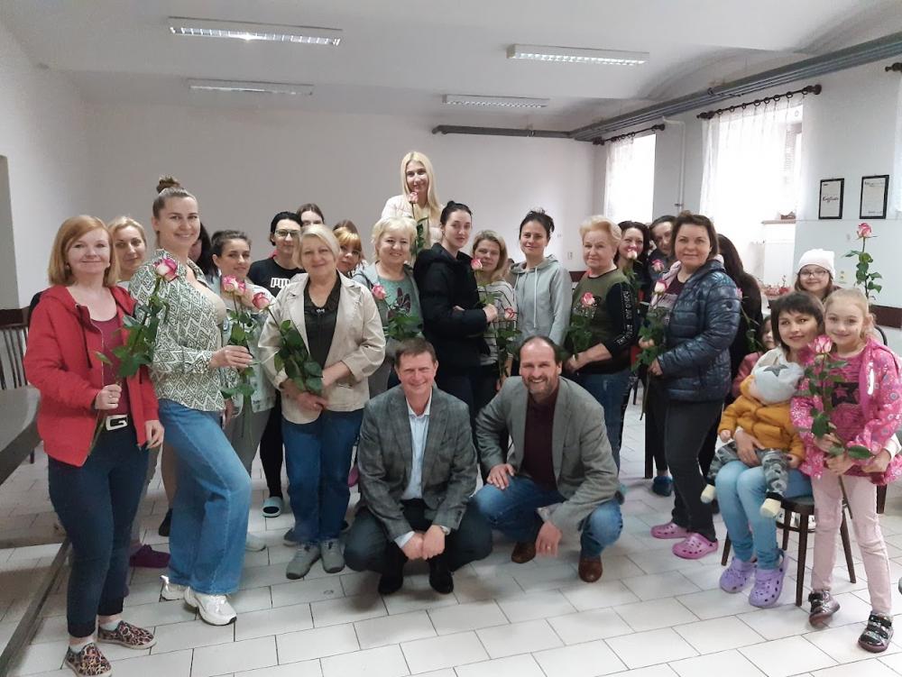 Slavilo se také na ubytovně pro ukrajinské uprchlíky na Nádražní ulici. Sešlo se tu skoro 30 maminek i se svými dětmi, kterým zástupci šlapanické farnosti pan Petřík a pan Vavro předali růži jako poděkování za výchovu a péči o své děti. Rozzářené obličeje plné úsměvů byly známkou toho, že i daleko od domova lze prožívat chvíle radosti.
