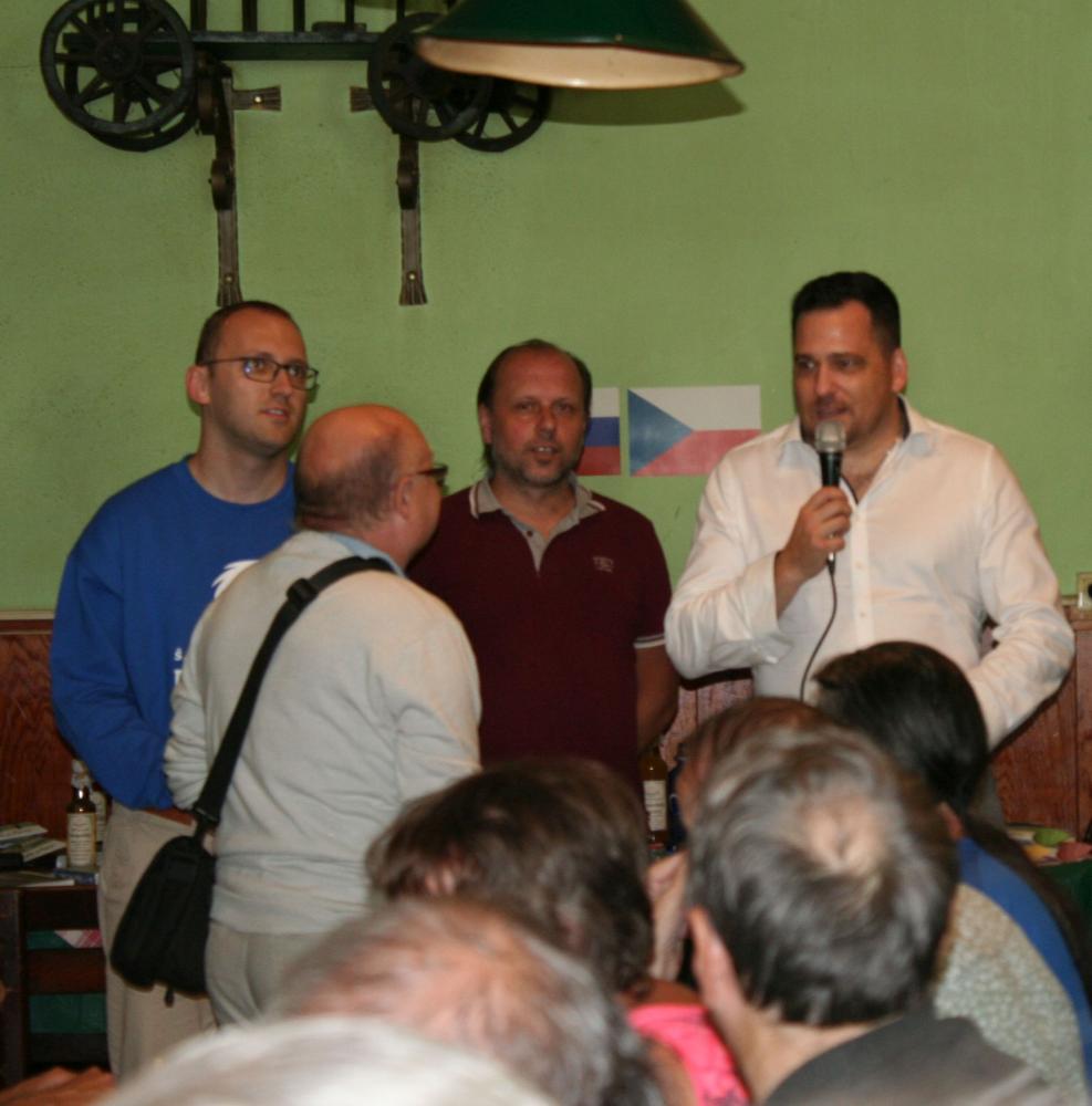 2) Pozdrav poslance Evropského parlamentu Tomáše Zdechovského. Jeho synové jsou aktivními hráči mládežnického šachu a otce zásobují šachovými vtipy. Zcela vlevo mezinárodní mistr Jaroslav Bureš, tentokrát v roli rozhodčího.