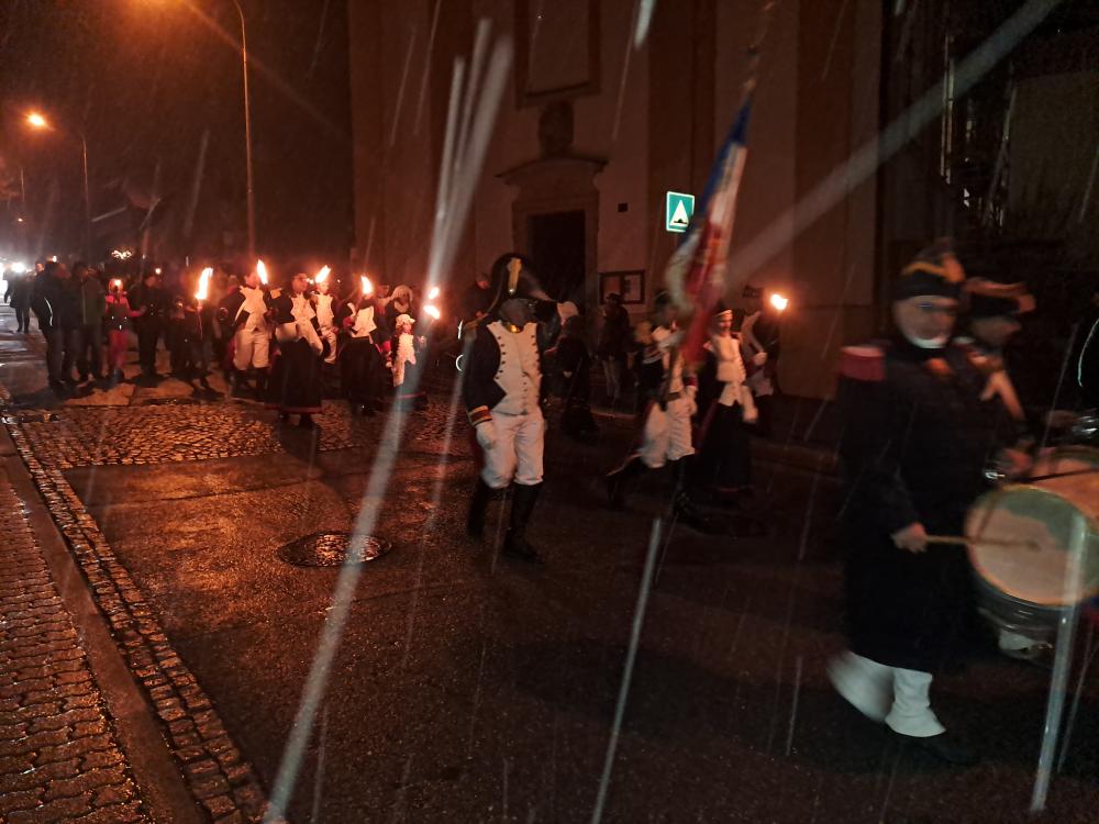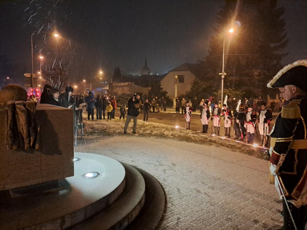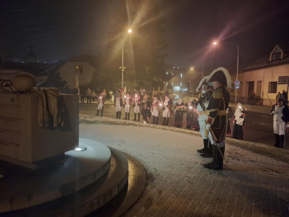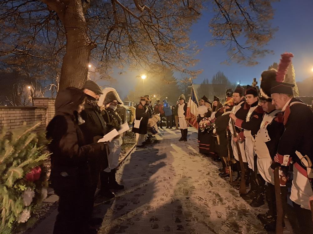 Vzpomínkové akce k 217. výročí Bitvy tří císařů. Vojáci vyšli z Masarykova náměstí, ke hřbitovu a pomníku francouzským lékařům.