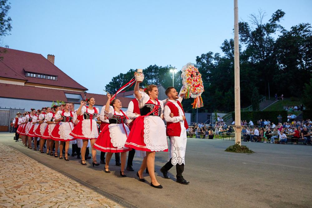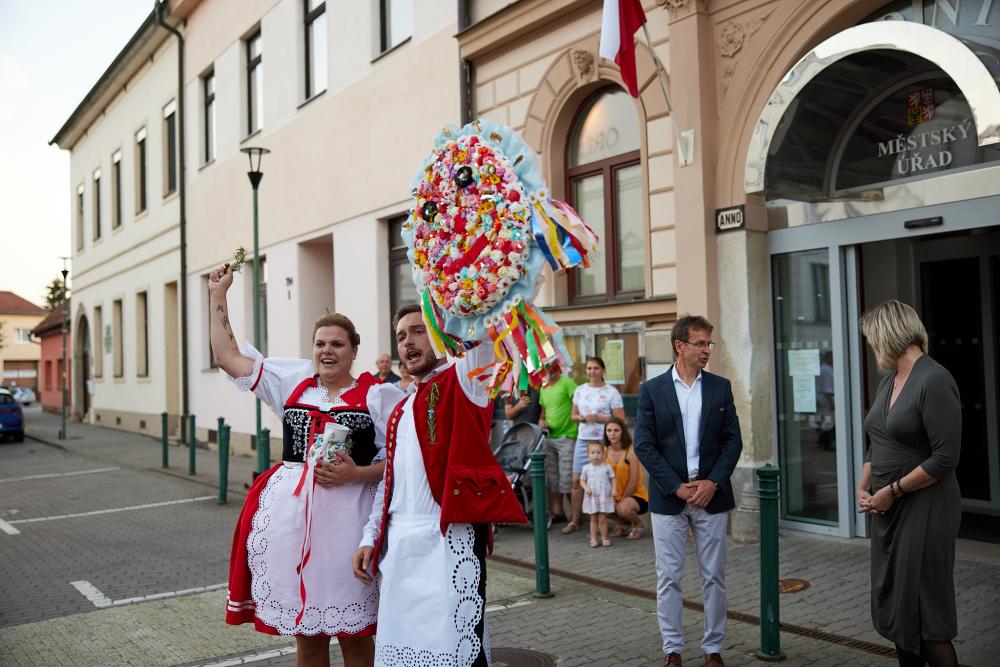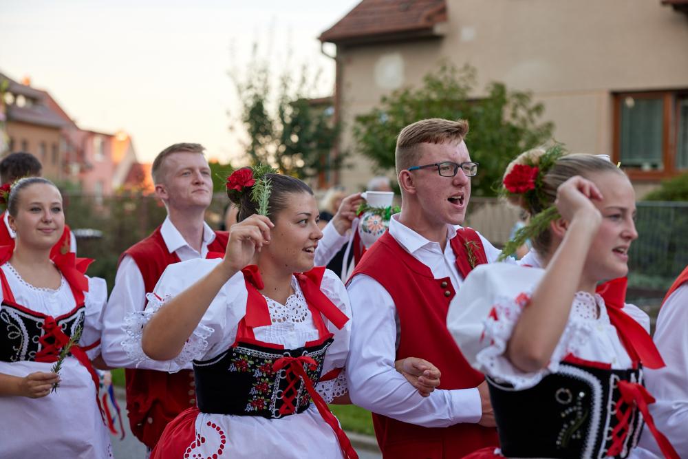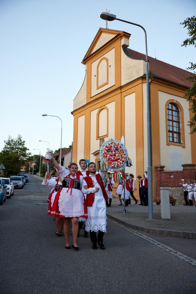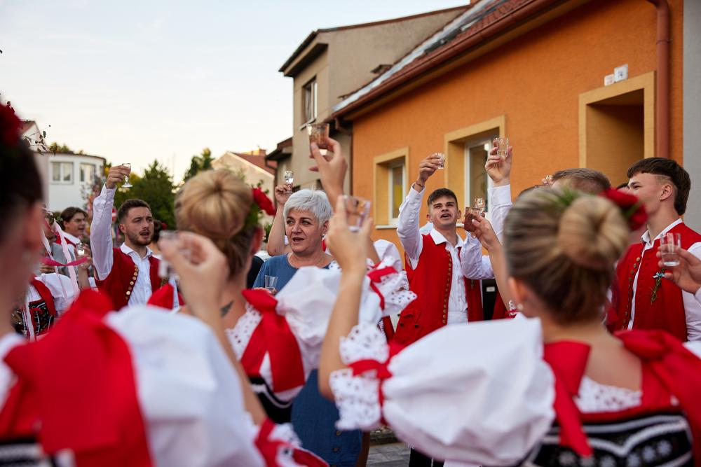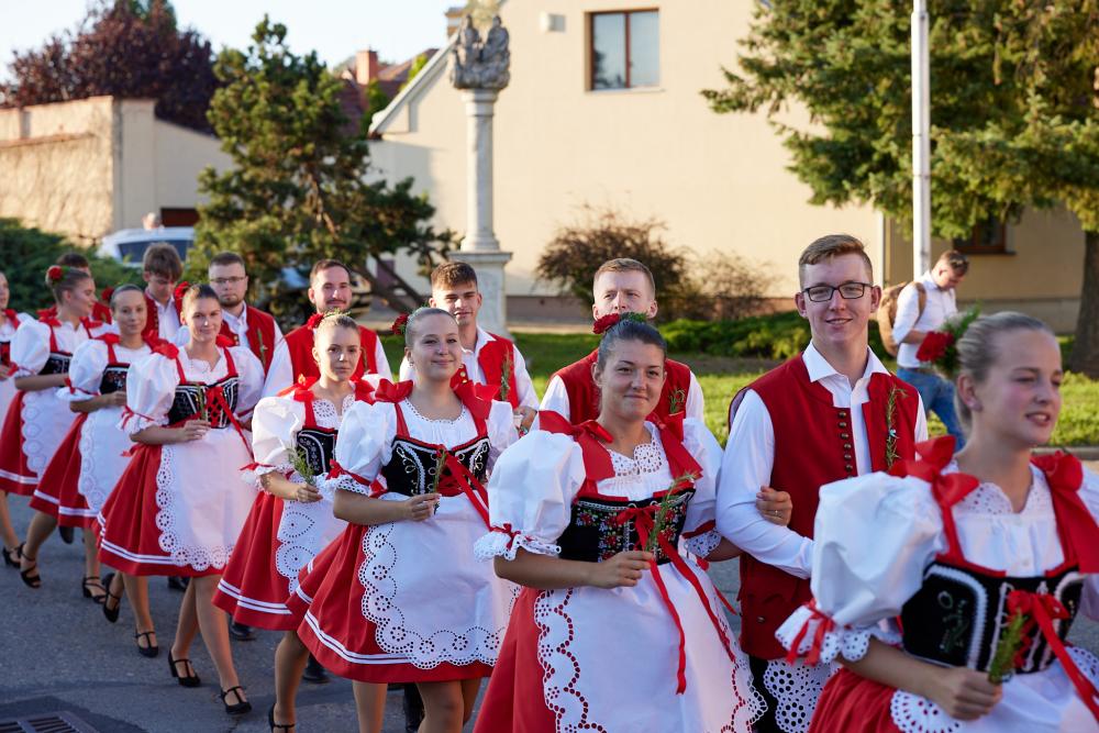 Krojovaný průvod, napříč Šlapanicemi pro první stárku a předání práva paní starostkou k pořádání hodů.