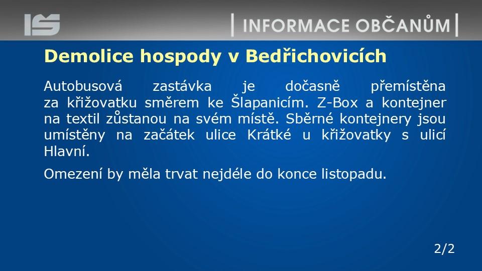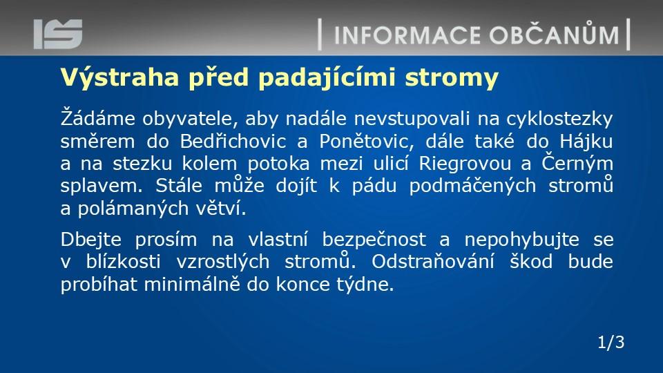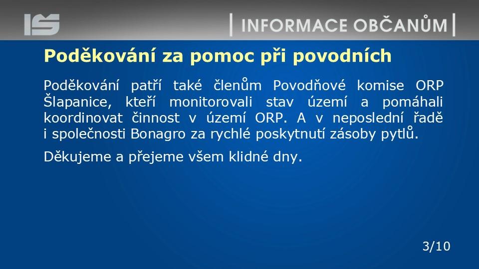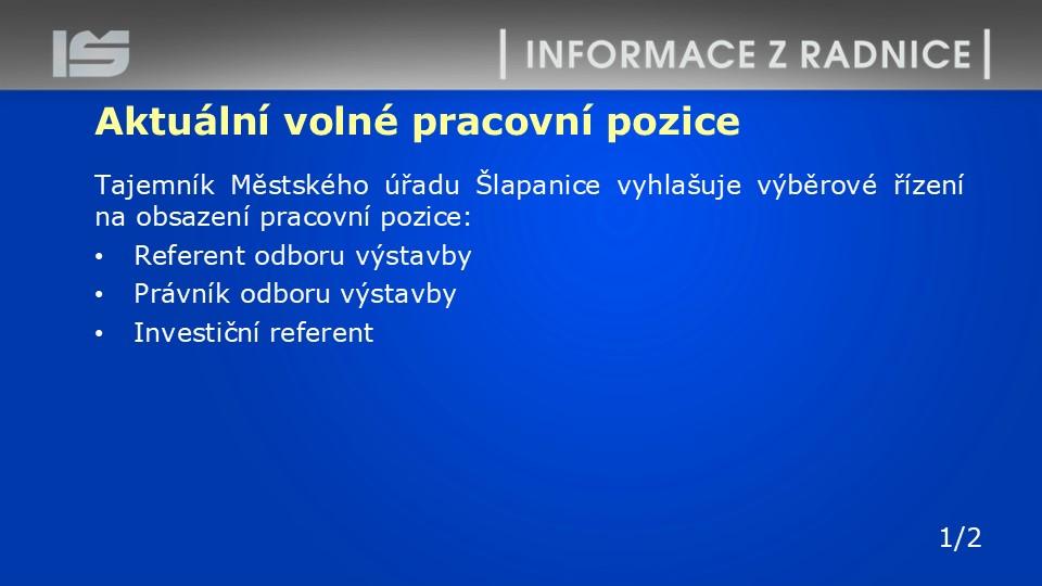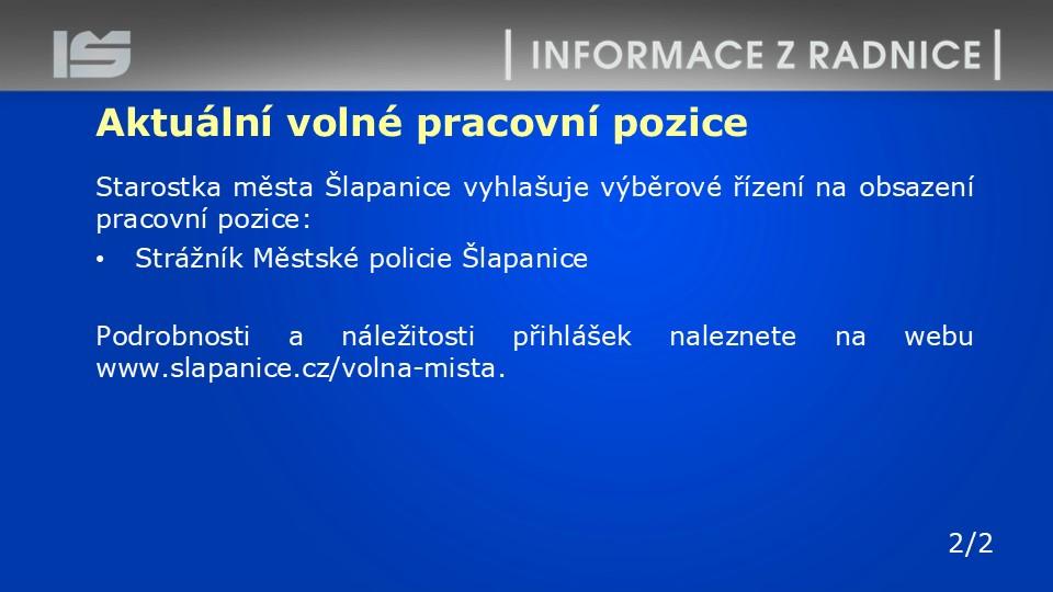 8.00 - 12.00 jsou na pracovišti ve Šlapanicích otevřeny pouze přepážky Odboru správních činností - občanské průkazy, cestovní doklady a evidence obyvatel.